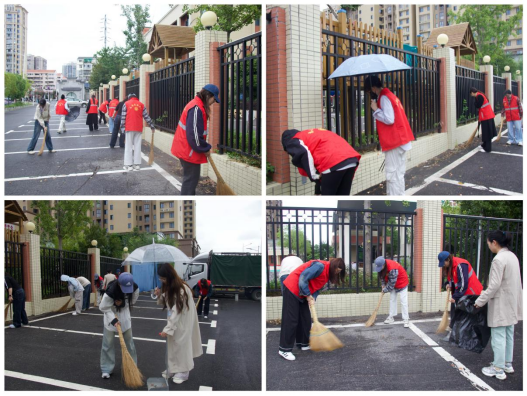 活动当天,太阳成城集团tyc234cc官网志愿者们与社区工作人员迅速投入到清扫工作中。尽管天气转雨,却丝毫没有影响志愿者们的热情。他们手持扫帚、垃圾袋等工具,分工协作,对社区内的道路、角落等区域进行细致清扫。