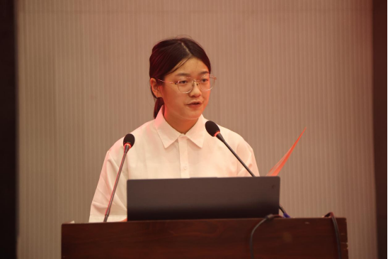 2025级新生代表范思贤随后发言。她引用“青春由磨砺而出彩,人生因奋斗而升华”与在场同学共勉,号召大家做“有信仰、有温度、有行动”的新时代传媒人,用镜头记录时代,用创意点亮未来。