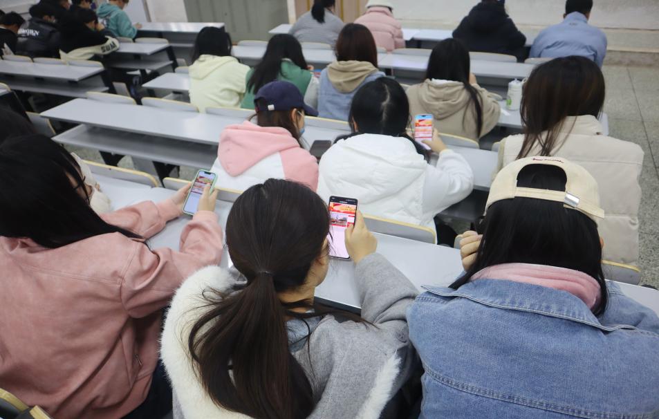 随后,在张老师的带领下,在场的全体同学通过普法网站视频共同学习,与同学们共同学习宪法知识,这不仅让大家走进宪法走入宪法,让同学们有了深切的法律意识和法治观念,更是激发了同学们对于法律的热爱和关注以及那份最重要的敬意。