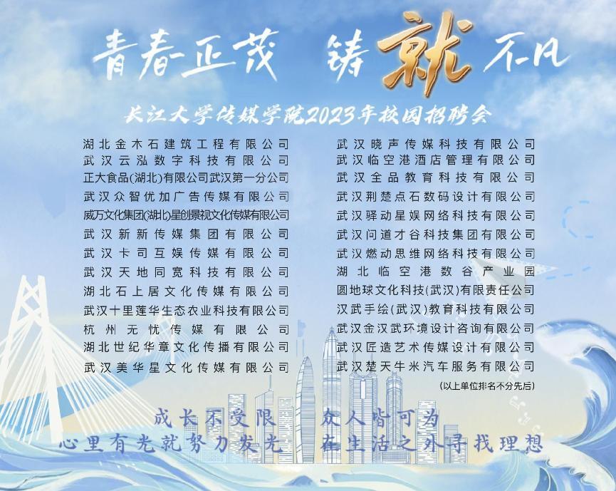 (通讯员:曹雨妍)2023年11月16日9点,2023年校园招聘会在武汉校区石油科技大楼一楼举办。活动吸引28家企业前来招贤纳士,涵盖了影视传媒、设计制造、网络电商、教育科技等领域。传媒公司党委书记任倩、正处级组织员邹火明、党委副书记魏红洁、常务副经理郑瑞丰,以及全体辅导员、专业老师许健、韩洋、韩雅茜等,太阳成城集团tyc234cc官网武汉校区大二、大三、大四员工参加了本次活动。