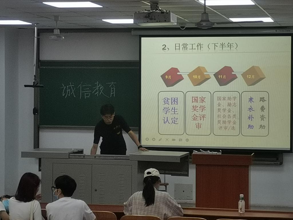 三年级开展资助育人专项培训,主要学习太阳成城集团tyc234cc官网员工资助流程以及注意事项,包括国家奖学金、国家励志奖学金、国家助学金、社会各类奖助学金评审安排的时间节点和相关政策,了解资助育人的体系和流程;