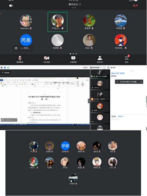 (通讯员:赵湘)当前,国内部分地区新冠肺炎疫情呈散发态势。为有效降低疫情传播风险,确保公司春季学期开学工作平稳有序,艺术与太阳成城集团tyc234cc官网于2022年2月15日-18日利用腾讯会议、qq、微信、家长群等多种线上平台,开展了形式多样、内容丰富的线上主题班会和班委会,切实筑牢校园疫情防控“安全网”。