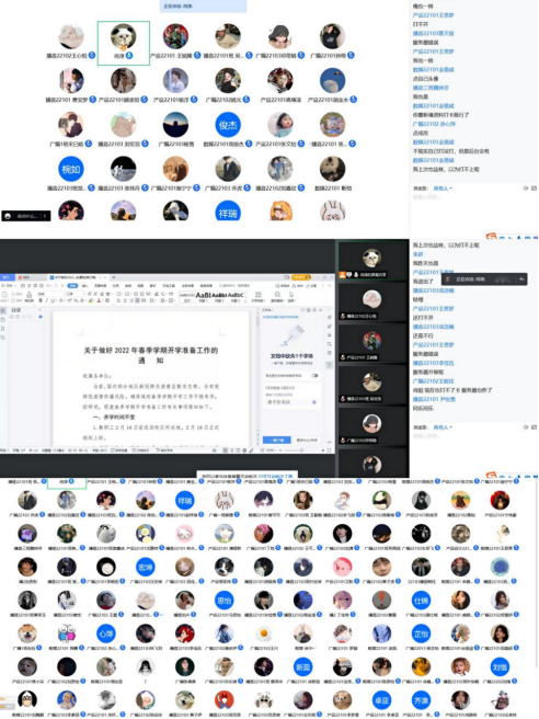 会上,辅导员首先传达了近期武汉市和公司关于疫情防控的重要指示及相关通告精神;对春季开学疫情防控与安全管理工作提出了具体要求:严格遵守公司疫情防控纪律,未经通知不得提前返校。做到非必要不出,出行不聚集、不扎堆,做好自我防护。同时再次强调,所有同学要严格落实“今日校园-信息收集”健康打卡制度,每日及时填写信息收集表。做好疫情防控教育、返校路途安全教育和防范金融诈骗教育。另外,辅导员也对员工身心健康、学习状态、求职规划给出了诸多建议,为开学做好准备。