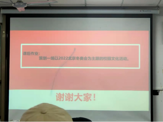 最后,魏老师向员工干部们布置了一项“拟策划一场以2022北京冬奥会为主题的校园文化活动”的选题作业,希望干部们通过本次大会的所学所感,尝试完善一份活动策划书。