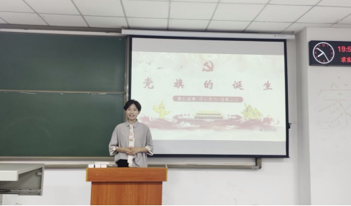 本次活动由支部学“习”成果介绍和支部风采展示两部分组成。在本次活动中,来自播音22102班的青年宣讲员王心悦为大家讲述了关于党旗的故事。“红旗已指先锋路,青史应留正气歌”。在党的带领下、在党旗的感召下,相信青年们一定能在未来的大海中乘风破浪,扬帆起航。