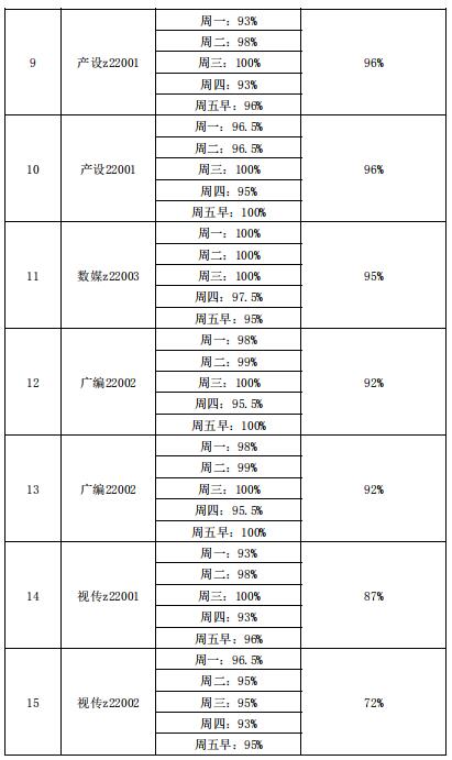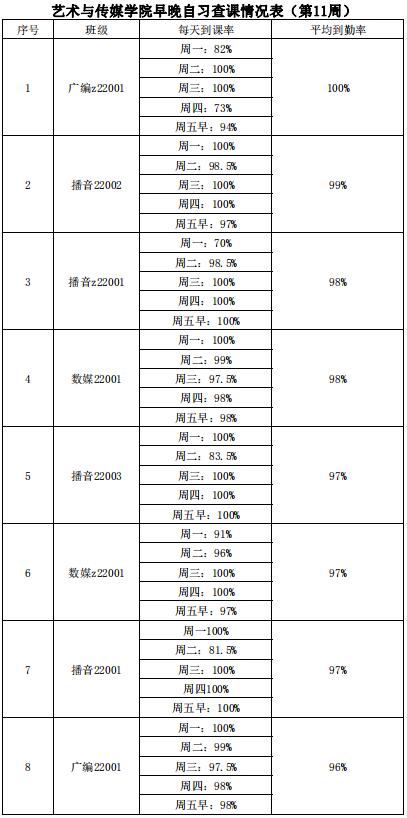 艺术与太阳成城集团tyc234cc官网早晚自习查课情况表(第11周)