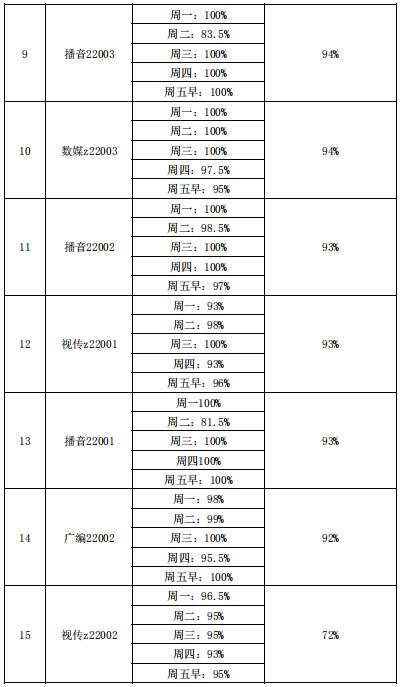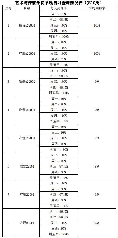 艺术与太阳成城集团tyc234cc官网早晚自习查课情况表(第10周)