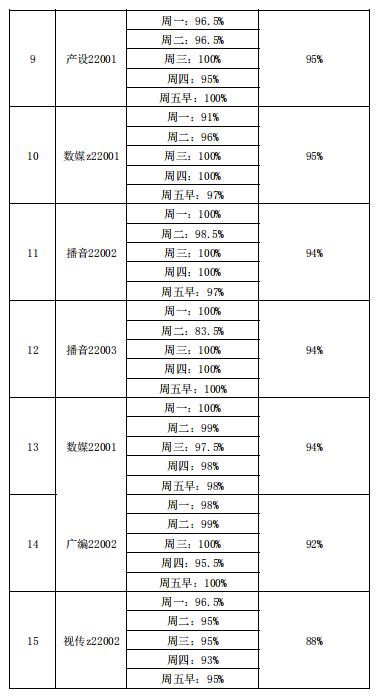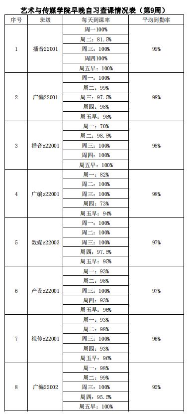 艺术与太阳成城集团tyc234cc官网早晚自习查课情况表(第9周)