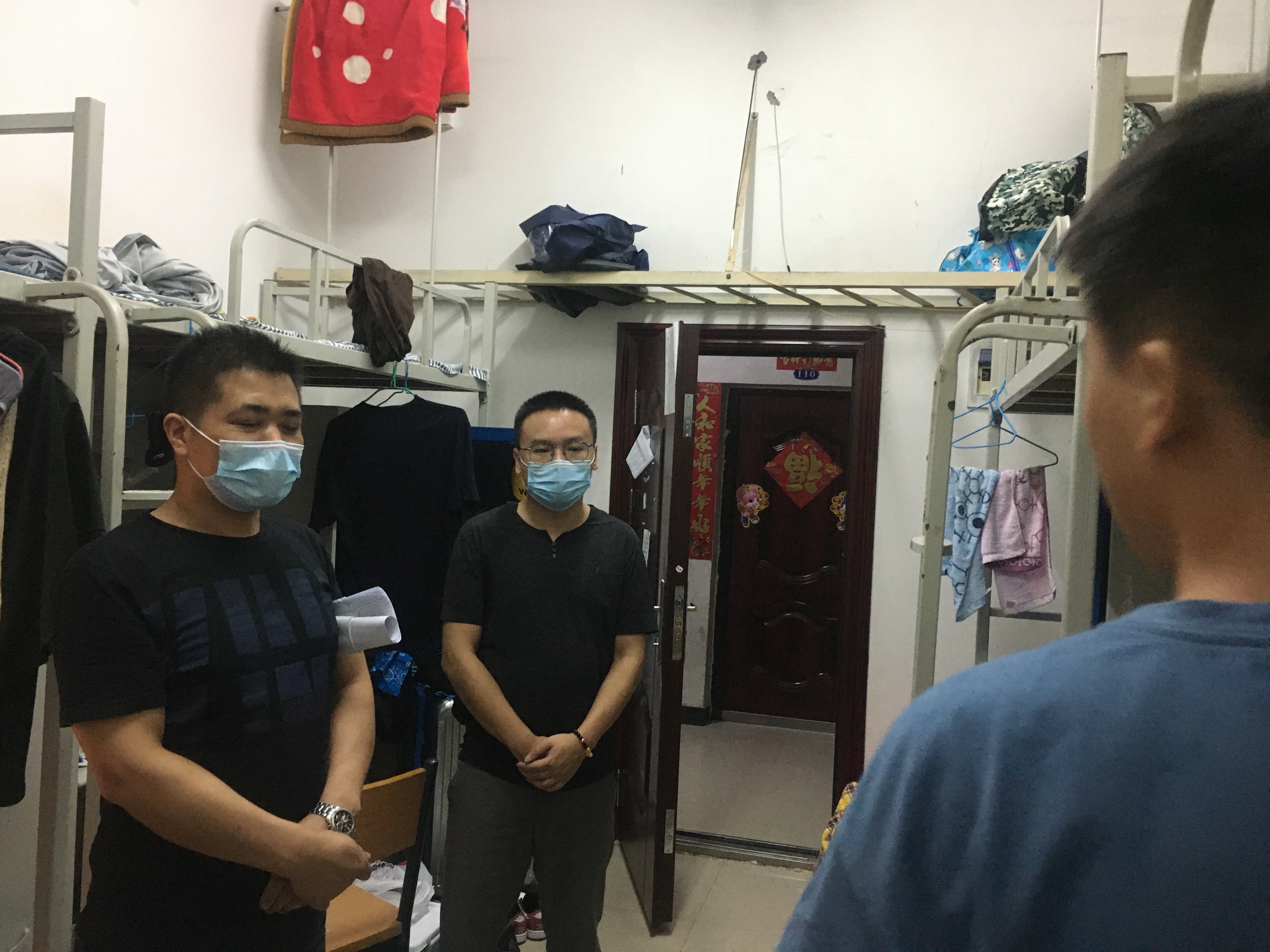 晚上在员工宿舍,院领导、老师们与同学们交流英语四六级备考情况,鼓励同学们要利用好宿舍健康监测期的复习时间,力争在本次的英语考级战中取得理想成绩。同时,与同学们就宿舍搬迁、物品报修、防疫工作等方面进行了交流探讨。