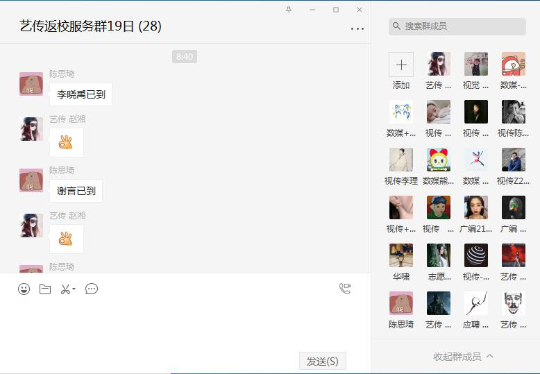 在员工正式返校前,公司已根据每日申请返校的员工名单,建立了每日“艺传返校服务群”,院领导、辅导员、当日值班教师及返校员工均提前加入到了该微信群。一是发挥信息发布功能。值班教师实时发布已报到员工姓名,辅导员实时发布已离校员工姓名及家长通知情况,以及报到流程的新变化;二是发挥实时提醒功能。群内教职工实时提醒员工早、中、晚餐的领餐或用餐时间,实时通报前一天的核酸检测结果;三是发挥在线答疑功能。群内教职工实时答复员工在手续办理过程中的相关问题。每日服务群有效地利用了网络平台优势,使得返校工作的各项数据真正做到了及时、对称、高效。