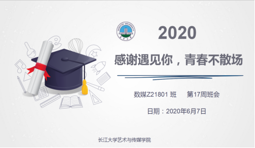 班会伊始,数媒z21801班班主任刘寒老师以PPT视频图片的形式展现了班上同学们的美好回忆。伴随着优美的背景音乐和插图,同学们欢笑连连,班会氛围十分温馨。班长华啸作为代表发言,回忆起与老师、同学共处的校园时光,讲述了初入职场的点滴感受。随后,刘老师与同学们分享了自己的经验体会,指导大家如何度过初入职场的迷茫。希望各位同学在就业、创业、生活的道路上能够明确自己的选择,继而用一个阳光的心态面对生活中的每一个人、每一件事。最后,刘老师还向同学们细心交代,要求大家按规定清算自己的合格证书及各科成绩,保证顺利、安全离校。