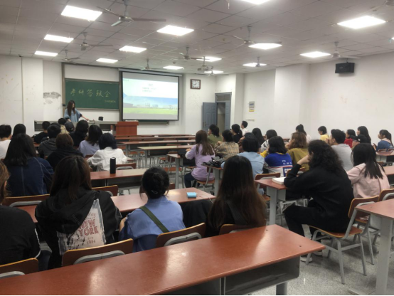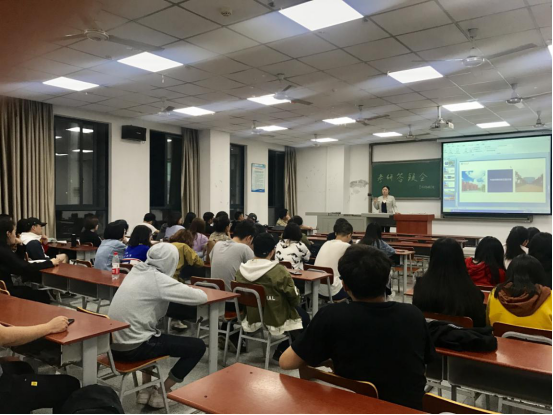 答疑会开始,主持人赵湘介绍此次会议的到场嘉宾及会议流程。紧接着,辅导员赵湘从考研目的、选择院校和专业、参考书目、复习方法以及心态调整等方面向大家介绍了考研的基本信息,希望同学们可以端正心态,树立信心,合理规划。她说:“考研不是唯一的选择,但是选择了就不要后悔。”