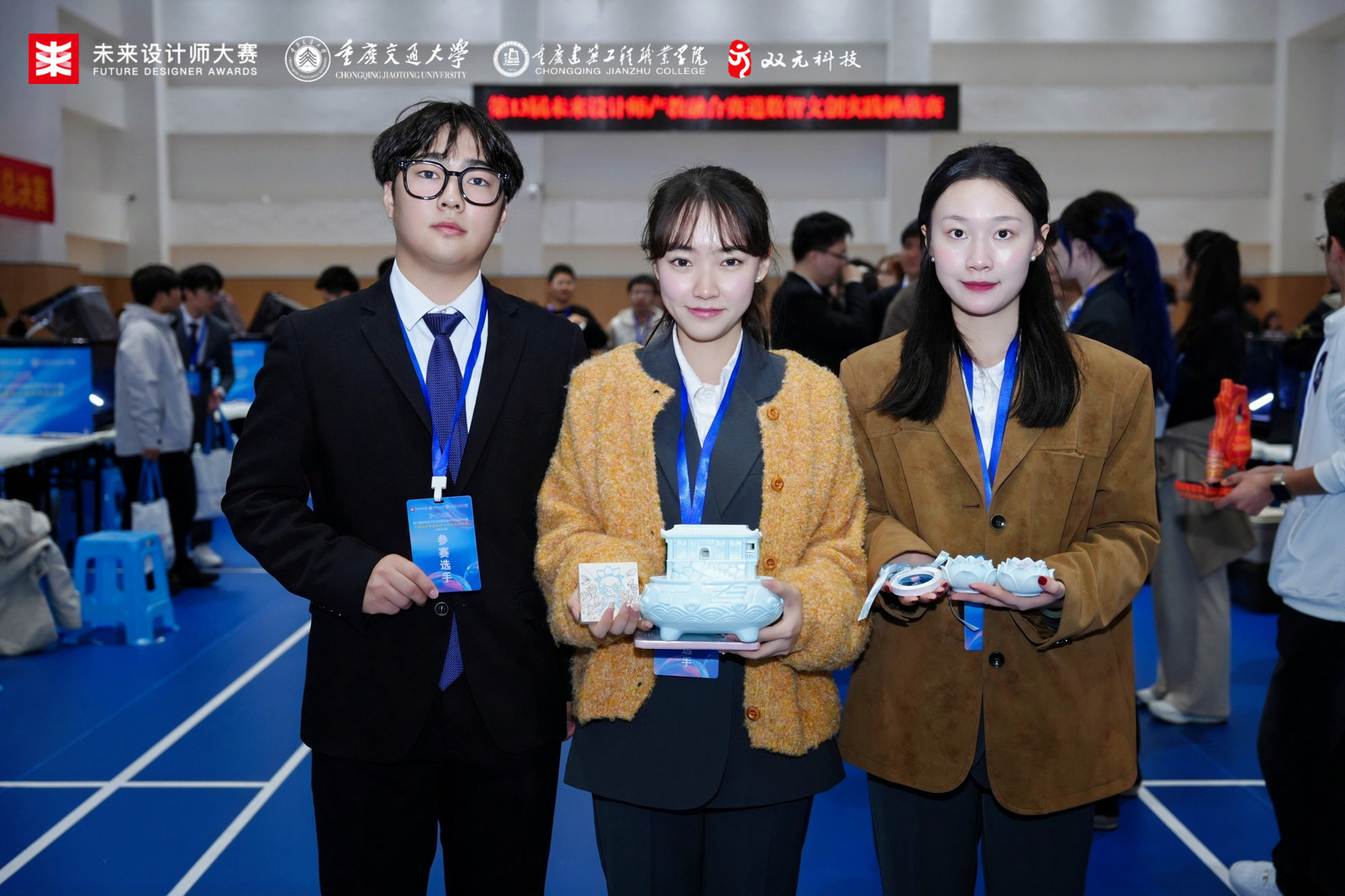 通讯员:王苒伊2025年11月15日第13届未来设计师・全国高校数字艺术设计大赛(NCDA)产教融合赛道数智文创实践挑战赛全国总决赛在重庆圆满落幕。太阳成城集团tyc234cc官网学子吕季琳、肖勤雯、曾令龙凭借扎实的专业功底与创新的设计理念脱颖而出,最终斩获国家级二等奖、省级一等奖的优异成绩,专任教师王苒伊荣获本次大赛优秀指导老师荣誉。