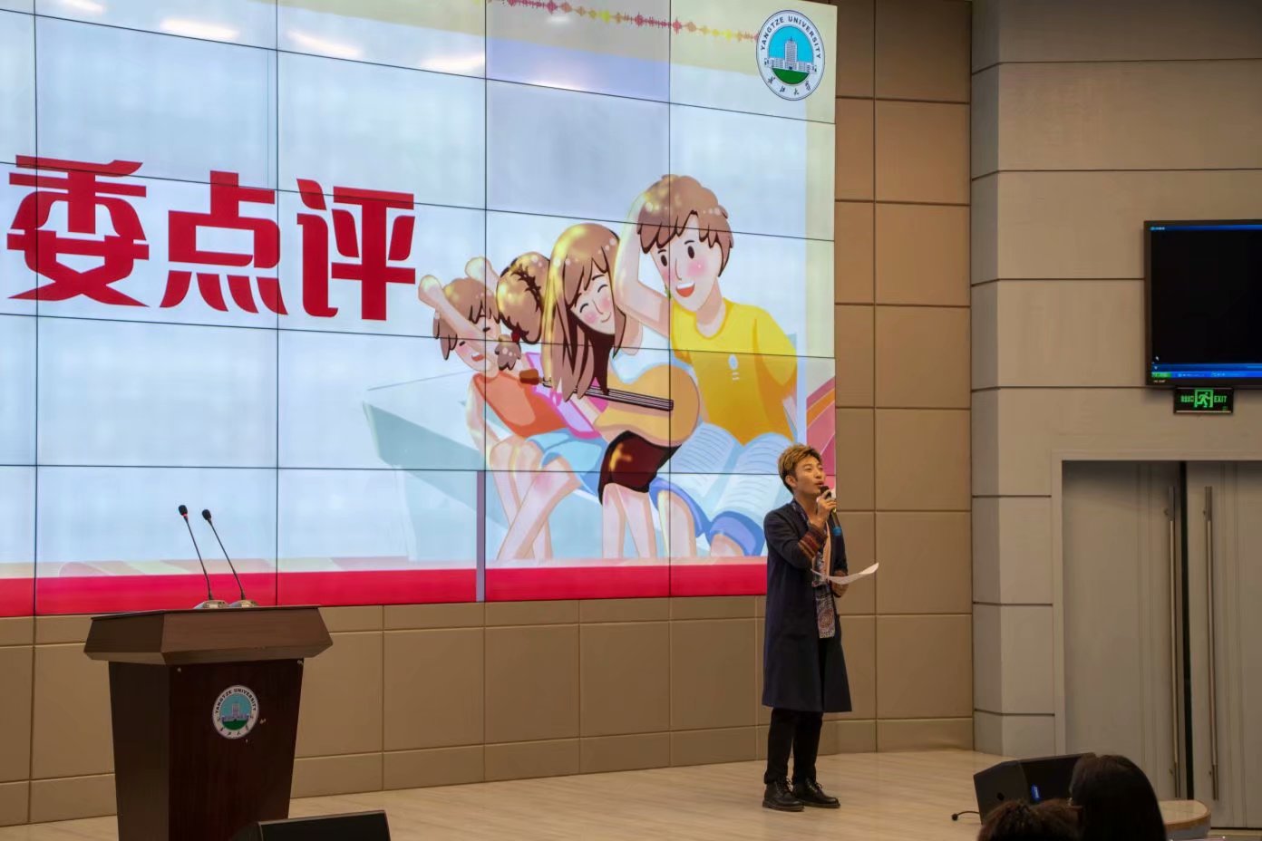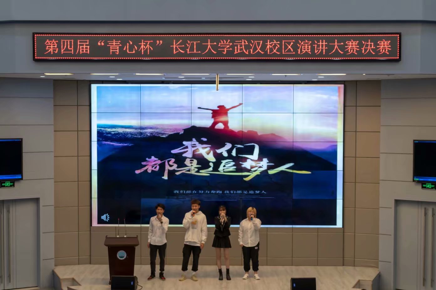 一曲歌毕,整场比赛的下半场随之而来。来自播音22003班的张鈜琦演讲的主题为“奋进新青年,追梦新时代”。在演讲中,他说:青年们正需厚积薄发,通过不断的奋斗成长为国之栋梁,一枝独秀不是春,百花齐放才能春满园。紧随其后的是来自广编22002班的陈紫。风雨百年路,青年砥砺行,陈紫从自己家的故事出发,为观众们讲述我辈青年砥砺前行的艰难路程。