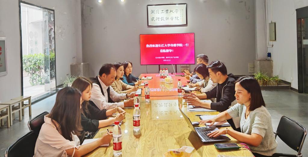 2024年10月16日下午,公司党委书记任倩、经理邹火明、党委副书记魏红洁、常务副经理郑瑞丰、产品设计专业负责人李君梓、视觉传达设计专业负责人寇晓芸一行赴湖北工业大学艺术设计公司进行了学习交流。该公司党委书记杨巧芳、经理饶鉴、党委副书记舒蕾、副经理王敏、副经理邓卫斌、副经理邓诗元等就“人工智能浪潮下设计专业的创新发展问题”“新媒体视域下传媒专业的改革发展问题”“工科背景下设计类专业的发展问题”等进行了深入交流。