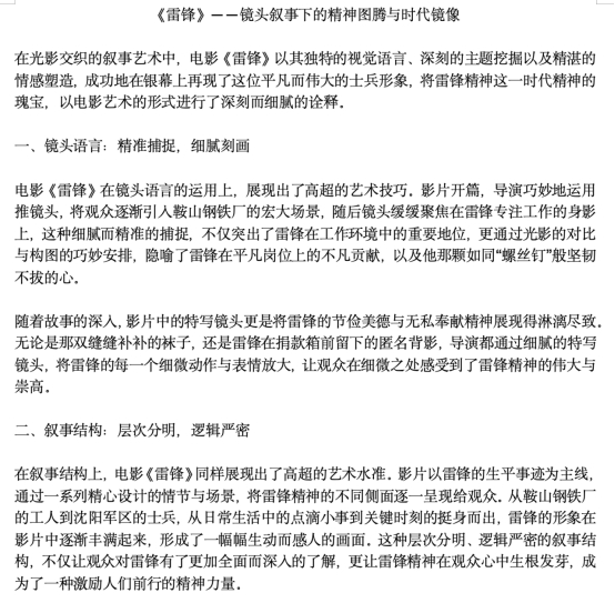 活动鼓励同学们用文字记录身边的好人好事,或撰写有关雷锋电影的观后感,分享对雷锋精神的理解与实践。同学们踊跃报名参与,用细腻的笔触表达自己对雷锋精神的认识。这些文字优美、情感真挚的作品展现出雷锋精神在校园中的广泛传播,在校园中营造出助人为乐、积极向上的良好氛围。