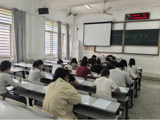 本次基层团干部思政技能大比武院级初选赛包含理论知识竞赛和主题团课展示两部分。在第一部分中,各团支书进行了以党史与团的基本理论知识和业务素养为主要内容的知识竞赛。西校区采用“一站到底”竞赛形式,采取轮流作答,答对积分,答错不积分的形式,通过多轮比拼进行积分排名。武汉校区采用试卷答题的形式进行。竞赛现场,团支书们严格遵循考场纪律,认真审题作答,展现出他们对党史和团的基本理论知识的深入学习和理解。