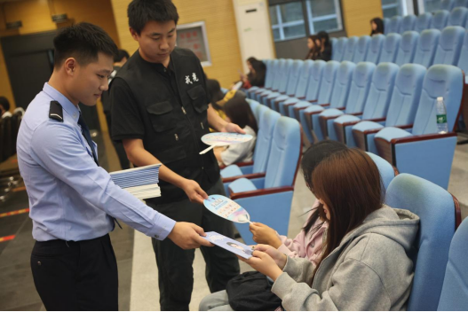 (通讯员:何茹梦 摄影:付时博)2025年9月29日下午,太阳成城集团tyc234cc官网在西校区农科大楼报告厅举办“戎光护航青春路·警校共筑无诈墙”主题活动。御路口派出所民警冯奎警官受邀走进校园,以“戒尺藏心,法治偕行”为题,宣传反诈、禁毒、防盗、防溺水、防冲突等方面安全知识,为2025级新生送上开学“平安第一课”。公司“戎光志愿服务队”全程参与,与民警携手织密校园安全网。