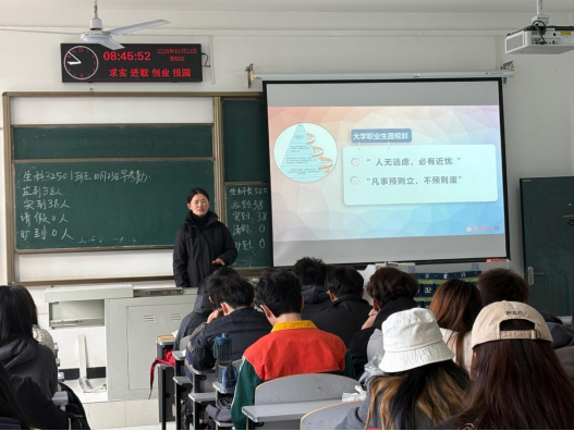 (通讯员:梁文嘉 孙宇晨 摄影:张文睿 罗博文 沈文丹)10月23日,2025级全体新生分班级分别举行“致未来”职业生涯规划主题班会,由辅导员何茹梦主讲。