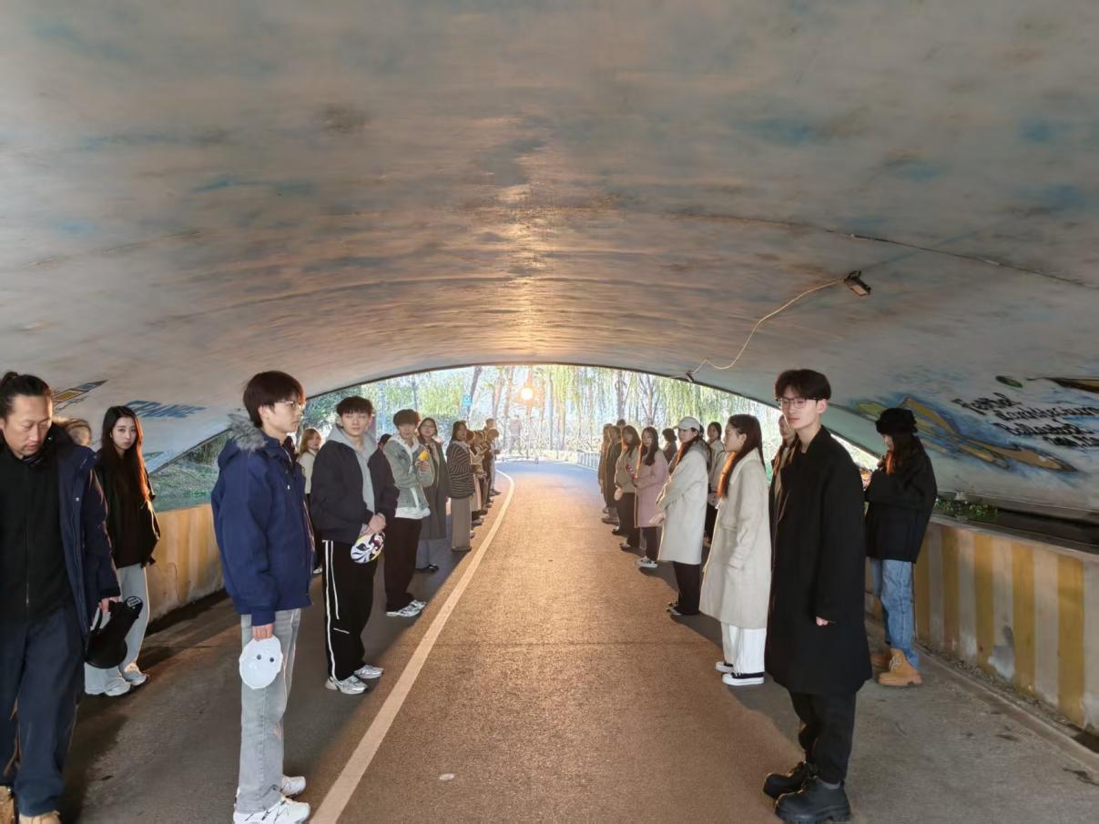 拍摄期间,同学们严格遵守剧组安排,积极配合导演与现场工作人员,于蔡甸花博汇等多个外景地完成各项表演任务。从镜头表达到场面调度中的走位配合,同学们展现出较强的组织纪律性,获得剧组工作人员的认可。