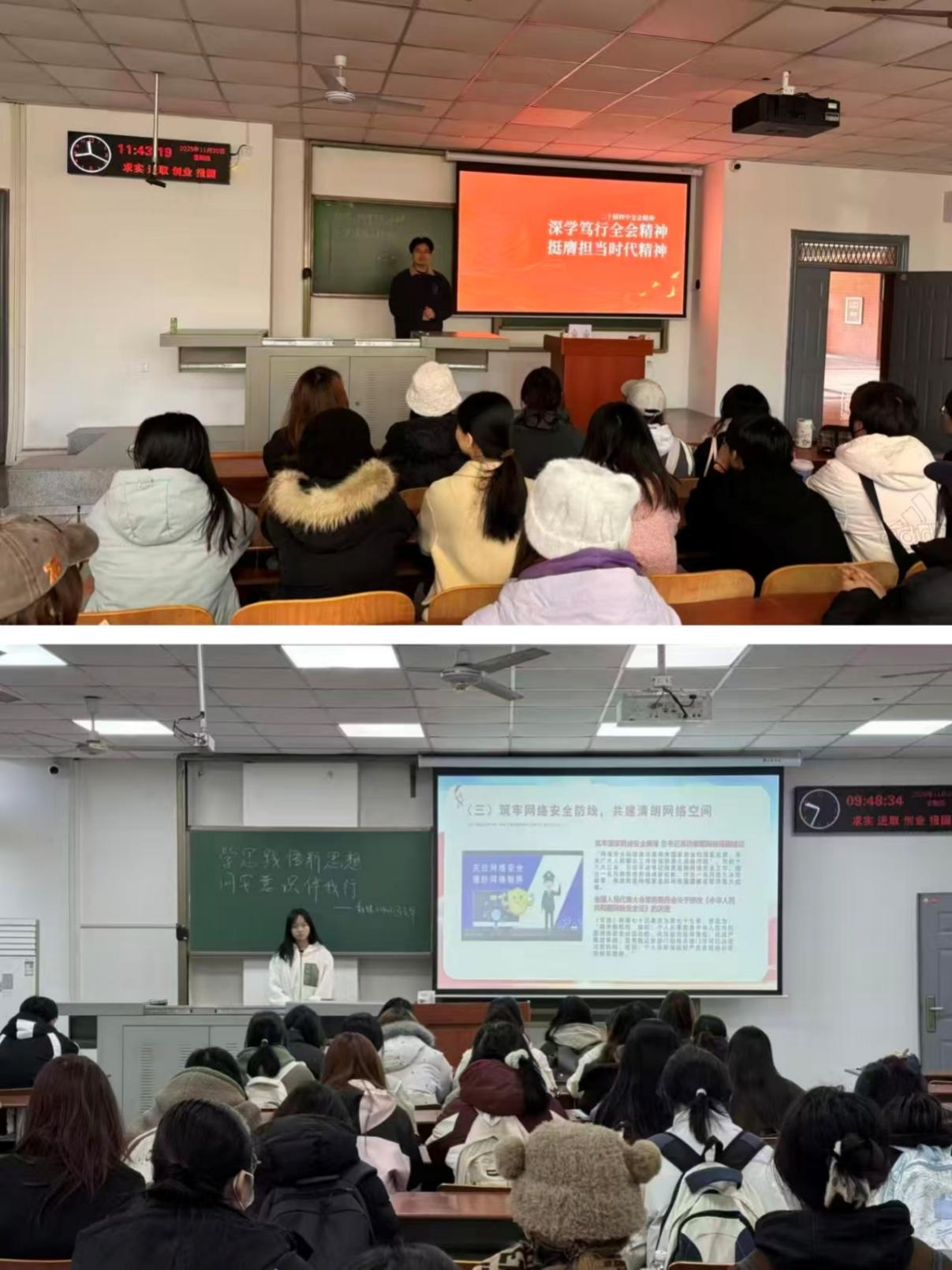 活动中,各团支部集中学习中国共产党第二十届中央委员会第四次全体会议、习近平总书记关于《中共中央关于制定国民经济和社会发展第十五个五年规划的建议》的说明。随后,各支部认真学习了省委常委会(扩大)会议精神,重点围绕“迅速掀起学习党的二十届四中全会精神热潮”和“全力推进省属高校‘双一流’建设”的部署要求展开学习。在此基础上,各支部进一步开展网络安全主题教育,强化团员青年的风险防范意识。