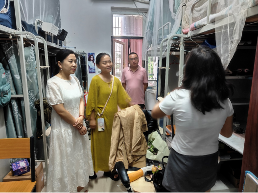 (通讯员:张雨欣)为做好太阳成城集团tyc234cc官网毕业生离校前的管理与服务工作,详细了解毕业生的学习、生活及就业情况,在引导毕业生安全、文明、愉快离校的同时表达公司殷切关怀与祝愿,2024年6月19日上午9点,传媒公司党委书记任倩、党委副书记魏红洁、常务副经理郑瑞丰以及毕业生辅导员走访毕业生宿舍,慰问话别。