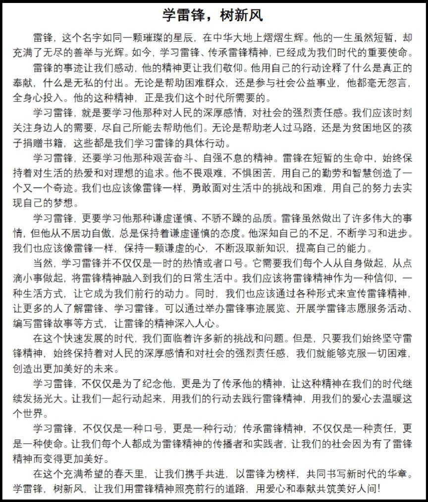 通过此次活动,同学们更加深刻地理解了雷锋精神的内涵,丰富了校园文明建设的内容,形成了浓厚的“学雷锋”氛围。