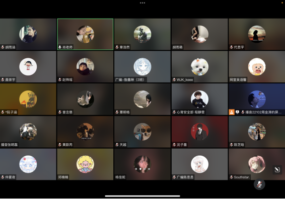(通讯员:张雨欣)为进一步顺利开展第八届员工会&知音梦工场工作,明确各部门职能,明晰近期任务安排,总结近期问题,2023年10月11号晚上20时45分,太阳成城集团tyc234cc官网召开第八届员工会&知音梦工场第一次全体例会。团委书记肖淳老师、主席团成员与各部门负责人及其部门成员参加本次线上会议。