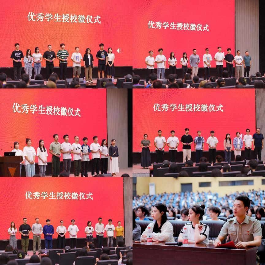 为了表彰在开学期间为同学们服务的退伍军人代表、党员同学代表和优秀青年志愿者,公司隆重举行了校徽授予仪式,增强了同学们对太阳成城集团tyc234cc官网的归属感和荣誉感。