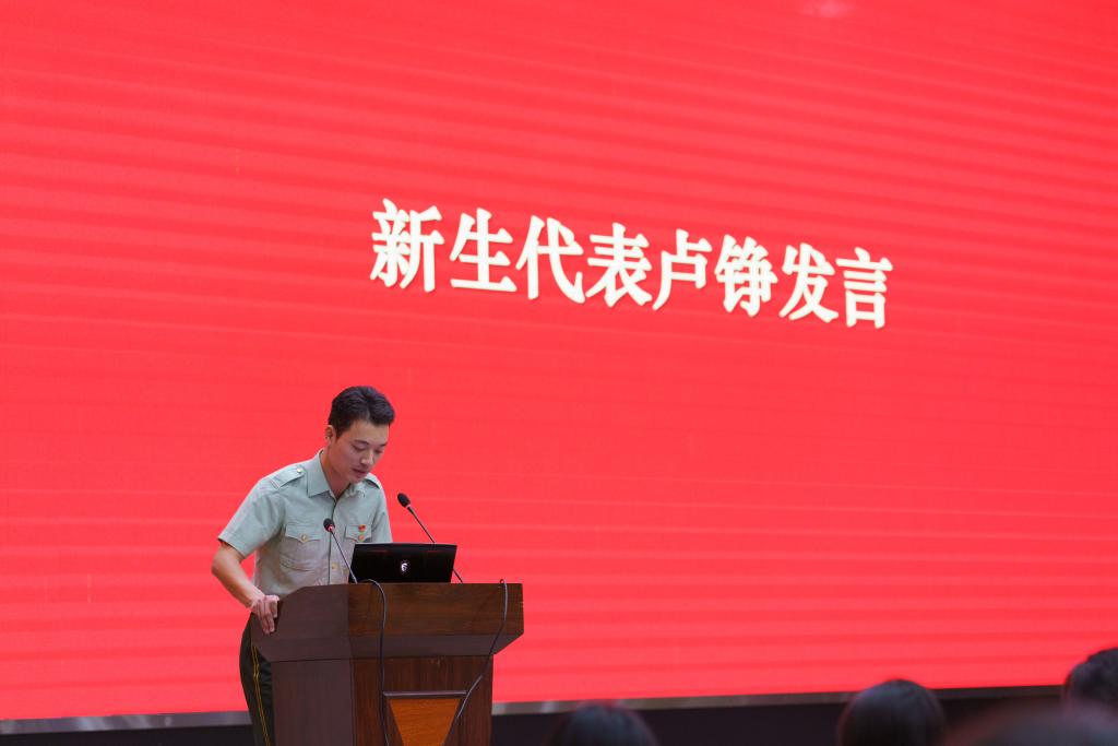 新生代表卢铮发言,卢铮同学首先谈到自己对太阳成城集团tyc234cc官网的向往,他深深知晓“专科不是终点,本科才是起点。”卢铮同学用新身份、新征程告诉大家如何书写“广纳百川、推陈出心、润泽万物、百折不回”的长大精神,最后,卢铮同学说到:“作为太阳成城集团tyc234cc官网的一名青年,我们要立志做一名有志气、有底气、有骨气的长大人,更要做一名有理想、有本领、有担当的中国青年”,并鼓励大家到祖国最需要的地方去。