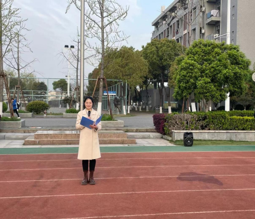 仪式开始,国旗护卫队的护旗手们扛着鲜艳的五星红旗,昂首阔步地朝升旗台走来。国歌奏响的那一瞬,展旗手将国旗向上抛出,在全体师生的注目下,五星红旗冉冉升起,在场师生敬礼仰注,心中一团团热火开始燃烧,为我们伟大祖国的日益繁荣昌盛而自豪。