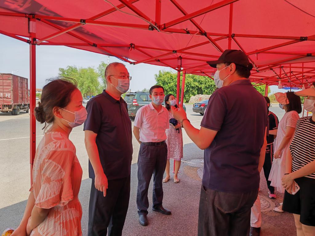 冯董事长一行详细了解公司老生返校、新生报到流程,公司领导班子向校领导们简要汇报了迎新报到、开学准备等工作开展情况,并重点介绍了公司主动服务蔡甸区科创企业的实习就业合作新模式。