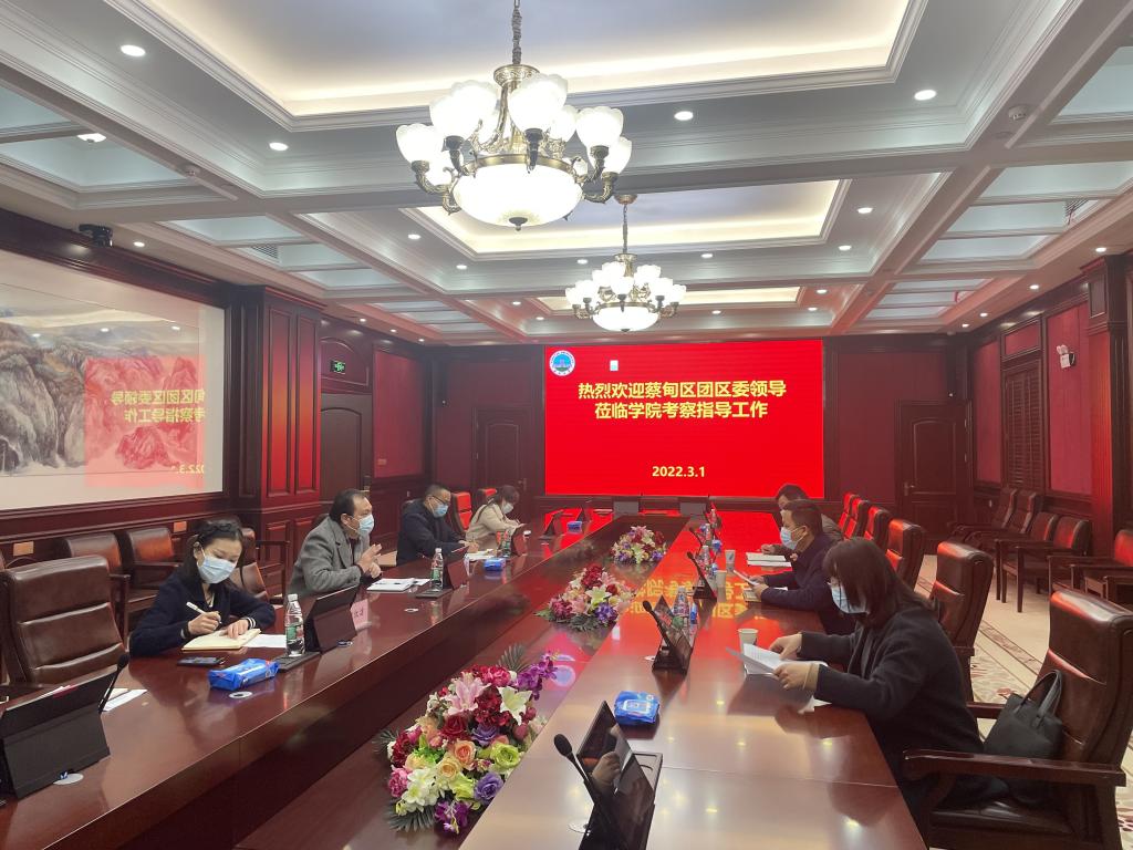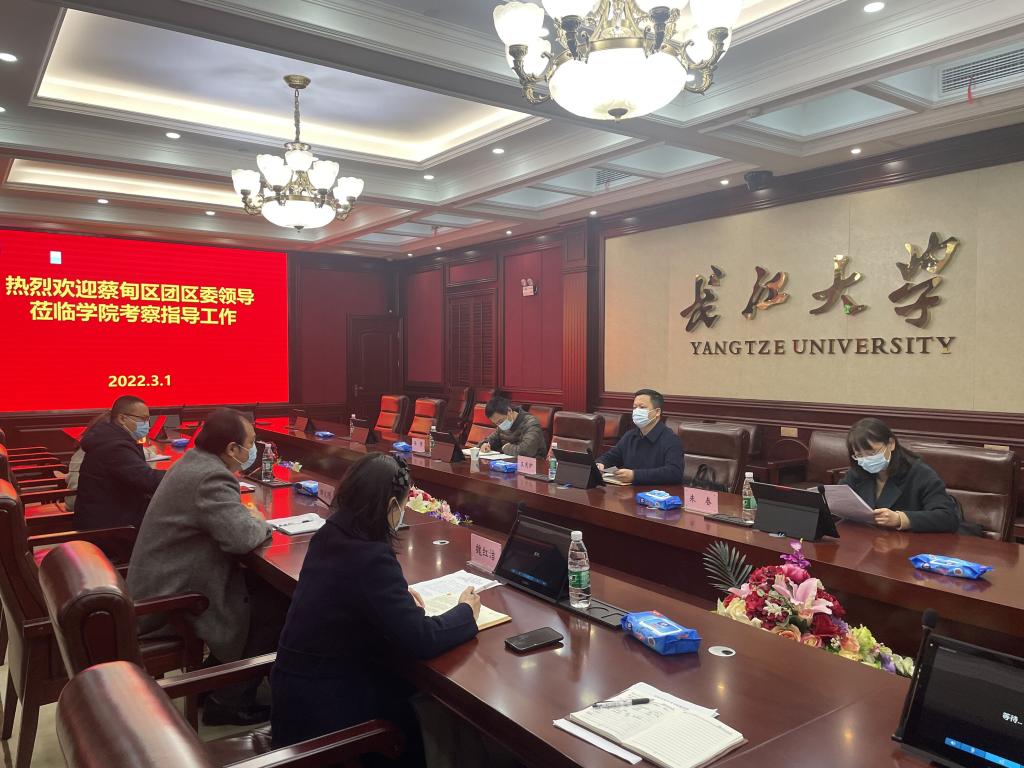 (通讯员:郑瑞丰)为了加强政校交流,共谋合作共赢,2022年3月1日上午10时,共青团武汉市蔡甸区委书记王关炉、副书记朱春、办公室主任张啸一行3人莅临公司共商共建工作。艺术与传媒公司党委书记邹火明、副书记魏红洁、副经理郑瑞丰、教学办主任饶艳芹、团委书记肖淳参会。会议由邹火明主持。