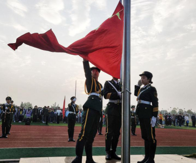 早七点整,升旗仪式正式开始。迎着朝阳,公司国旗护卫队成员迈着铿锵的步伐来到了国旗台下,全场一片肃静。在激昂的《义勇军进行曲》中,升旗手振臂一挥,鲜艳的五星红旗徐徐展开,在初升的阳光映照下,全年级师生的注目中,迎着初升的太阳,在晨曦中迎风飘扬在太阳成城集团tyc234cc官网的上空。