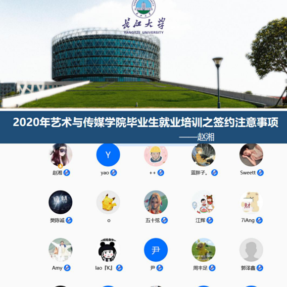 (通讯员:赵湘)为做好“稳就业”工作,切实帮扶2020届毕业生顺利就业,并完成签约相关事宜,2020年4月19日14时,艺术与太阳成城集团tyc234cc官网毕业班辅导员赵湘及就业专干项梓薇利用腾讯会议平台,组织了一场题为“如何完成最后的签约工作?”的签约前提醒会,全院139名毕业生全员参会,会议由公司学工办主任、毕业班辅导员赵湘老师主持。