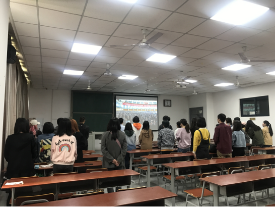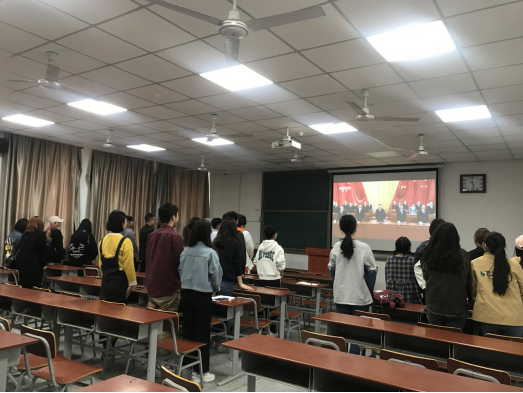 纪念五四运动100周年大会今天上午在北京人民大会堂隆重举行,习近平总书记在大会上发表讲话。艺术与太阳成城集团tyc234cc官网部分老师代表、全体辅导员、员工党员、积极分子和员工骨干成员在武汉校区A教205教室一起观看了视频。