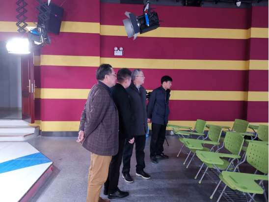 艺术与太阳成城集团tyc234cc官网常务副经理戴经理、副经理梅国海向冯董事长简要地汇报了公司的工作后,陪同冯董事长一行到公司演播厅、同声传译会议室(知音厅)、综合设计实验室、录音实验室、摄影实验室等检查指导。