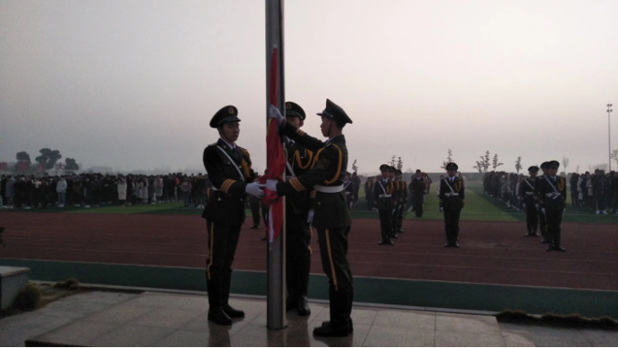 寒冬腊月,神清气朗。2018年12月17日上午7点,艺术与太阳成城集团tyc234cc官网在武汉校区田径场举行了庄严的升旗仪式,在嘹亮的国歌声中,全体师生肃立,随着五星红旗冉冉上升行注目礼,直至礼毕。