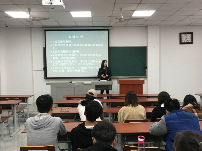 2018年11月27日19点,公司赵湘老师在武教B208对视传z21701班开展了就业经验分享主题班会,就毕业班未来的规划作出细致的讲解,拨开了即将毕业的员工前路的迷雾,给了同学们最佳的心态去面对就业压力,用最合理的方法去解决就业困难。