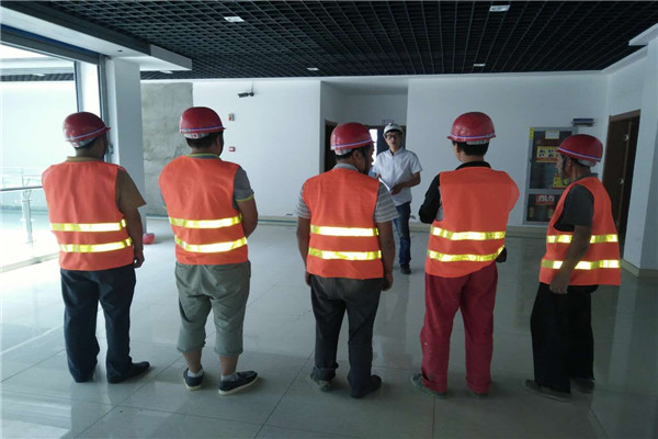 在培训中,邹火明书记对当前面临的安全形势做了分析,针对公司实训中心建设作业周期较长、工期紧、施工楼层较高、各工种穿插进行等特点,他对施工中的安全措施、卡控、预案及注意事项等组织全体施工人员进行了学习和部署:要求每一个施工人员,时刻警钟长鸣,要树立“安全第一”的思想,本着为家人负责、为自己负责、为项目负责的意识,时时讲安全,处处讲安全,把安全责任落实到每一个分项工程、每一个环节、每一个岗位;要严格执行标准化管理,从严过程控制,把遵章守纪的要求贯彻到每个人,施工中不存侥幸心理,不当“老好人”,相互监督、相互检查,将安全隐患消灭在萌芽状态。
