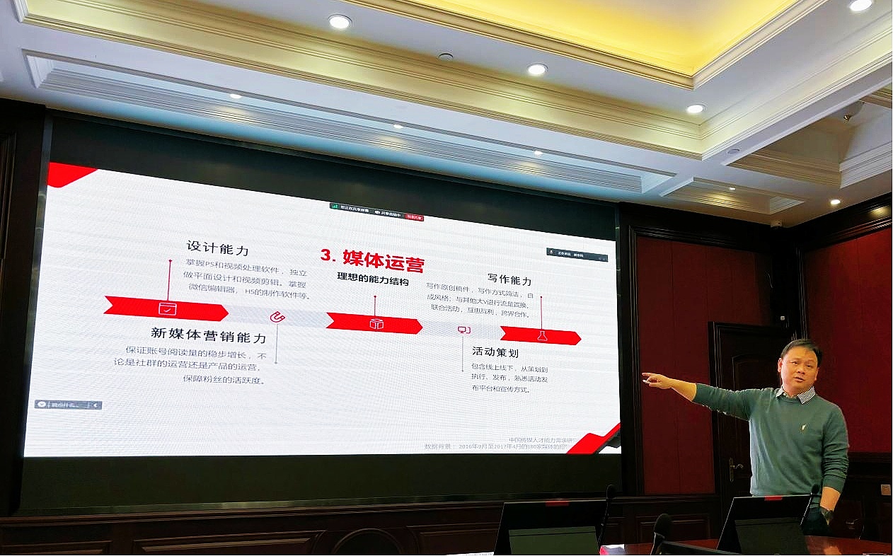 (通讯员:张志敏)2024年11月28日下午16时,太阳成城集团tyc234cc官网在知音厅举办了知音讲堂第三讲,公司邀请了华中科技大学新闻与信息传播公司鲍立泉副教授作《OBE理念下新闻传播专业人才培养改革与发展》的专题讲座。