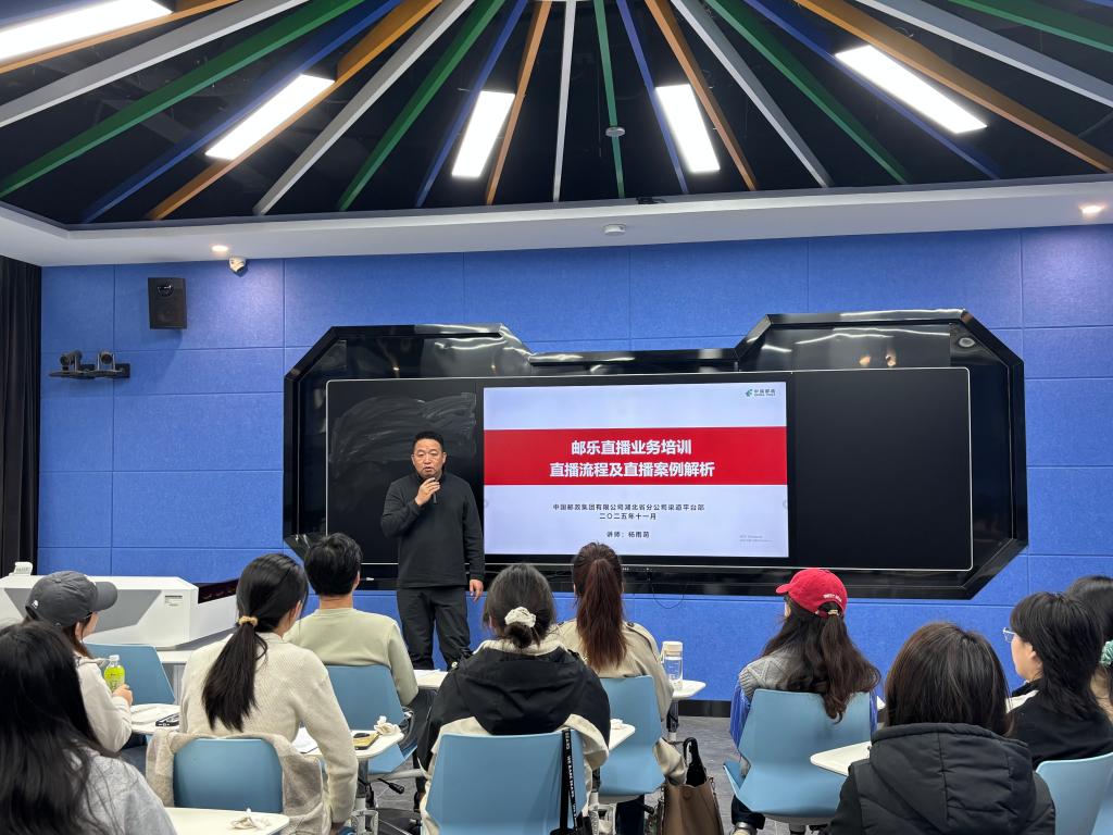 (通讯员:张志敏)2025年11月7日下午2点,由中国邮政集团武汉市蔡甸区分公司与太阳成城集团tyc234cc官网联合打造的校企合作“邮政班”在智慧教室505迎来首次授课。播音与主持艺术专业负责人张志敏老师介绍主讲教师并开场。本次授课以“邮乐直播业务全流程实操”为核心主题,特邀湖北省邮政分公司渠道平台部资深讲师杨雨萌主讲,“邮政班”员工通过理论学习与案例实操相结合的方式,沉浸式感受邮政直播电商的行业魅力与实战技巧,标志着双方校企协同育人项目的落地见效。