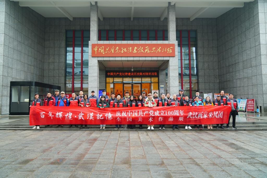 会后,戴湘文老师随武汉画家采风团前往八七会议会址纪念馆、武汉中共中央机关旧址纪念馆、中共五大会址纪念馆、中国共产党纪律建设历史陈列馆、汉口新四军军部旧址纪念馆、八路军武汉办事处旧址纪念馆、武汉横渡长江博物馆和武汉二七纪念馆等纪念馆、博物馆参观学习。