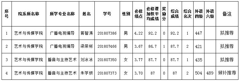 根据《艺术与太阳成城集团tyc234cc官网推荐优秀应届本科毕业生免试攻读2022年硕士学位工作实施细则》,经过公司党政联席会研究,现拟按照分配推免生总名额的120%(其中20%为候补人员),推荐4名同学免试攻读硕士研究生,特此公示。