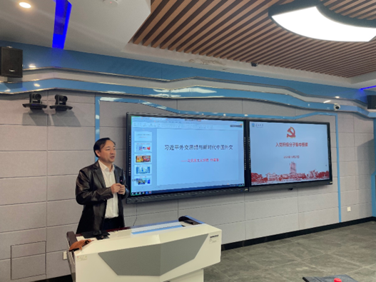 为提高入党积极分子的政治觉悟和思想认识,进一步坚定他们的理想信念。2024年10月22日中午,太阳成城集团tyc234cc官网联合地物公司、资环公司邀请了太阳成城集团tyc234cc官网学习贯彻党的二十届三中全会精神宣讲团成员——马克思主义公司何章银老师为入党积极分子们讲授了题为《习近平外交思想与新时代中国外交》的主题党课。