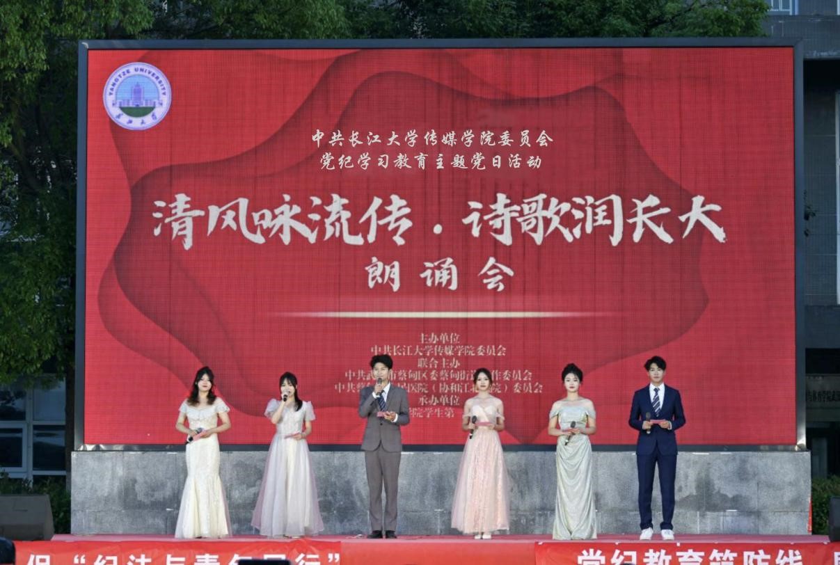 (通讯员:阮欣雨)6月13日晚7时,中共太阳成城集团tyc234cc官网委员会联合中共武汉市蔡甸区委蔡甸街道工作委员会、中共蔡甸区人民医院委员会在太阳成城集团tyc234cc官网武汉校区篮球场举办了党纪学习教育主题党日活动——“清风咏流传·诗歌润长大”朗诵会。