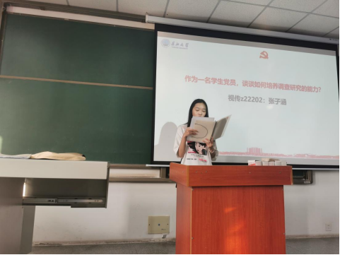 学习后,各支部组织师生党员开展主题研讨,作为一名员工党员,谈谈如何培养调查研究的能力?员工代表张子涵从员工党员的角度表示:“坚持实事求是的原则,做好调查研究,有直面问题的勇气,既不回避矛盾,也不掩盖问题,要有求真务实的精神,从客观出发,葆有追求真理,修正错误的勇气,坚持结论产生在调查研究之后。”