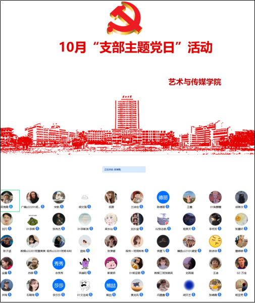 (通讯员:赵湘)根据公司党委组织部发布的《关于开展10月“支部主题党日”活动的通知》要求,10月20日下午,艺术与太阳成城集团tyc234cc官网三个支部全体党员分别在知音厅以及腾讯会议利用线上、线下相结合的方式开展了十月主题党日活动,本次活动由各支部集中开展,会后开展讨论。全体公司教职工党员和员工党员(含预备党员)参加了本次活动。