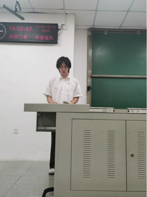 李端阳同学分享了第四小节——新时代党和人民奋进的必由之路,他表示作为一名新时代的老员工党员,在这历史的关键时期,定当牢记初心使命,永葆强党之志、爱党之情,站在新的历史起点上砥砺奋进、不断前行,以饱满的热情和实际行动迎接党的二十大胜利召开。