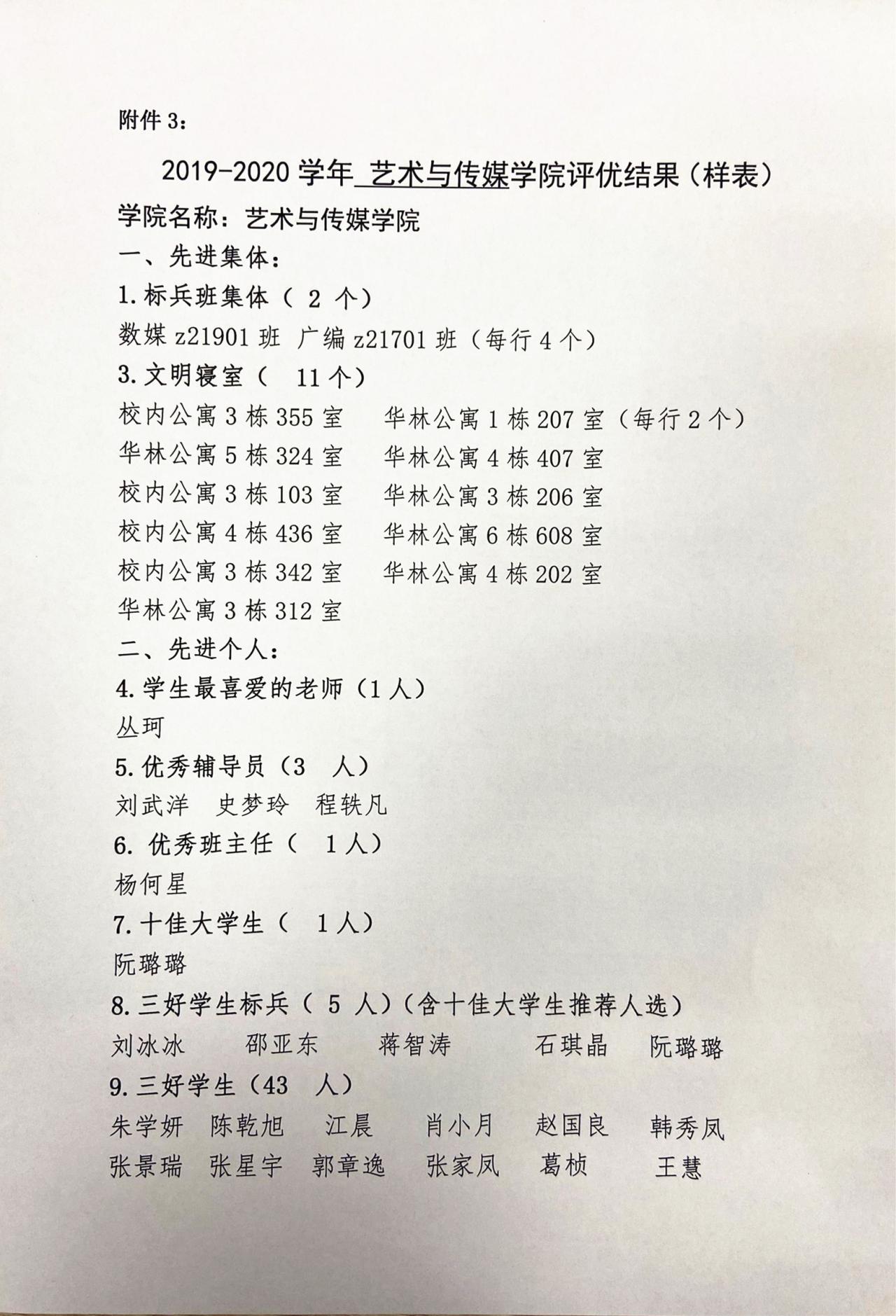 2019—2020学年艺术与太阳成城集团tyc234cc官网评优结果公示